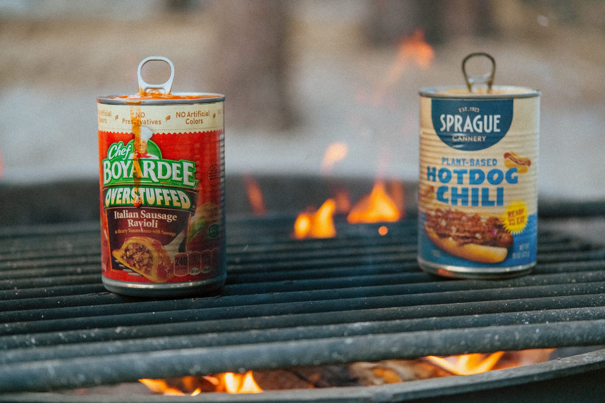 We ended the evening around the campfire. Making my trusty canned dinners.